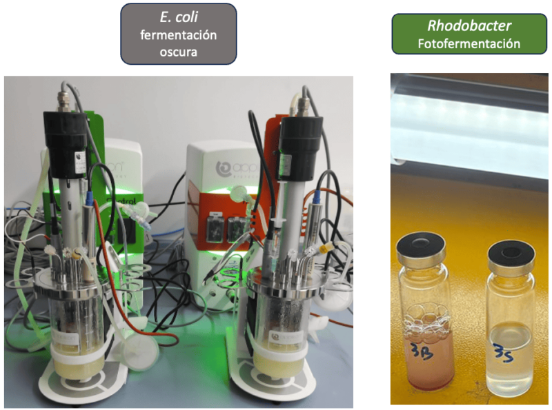 Durante el proceso, utilizaron además microbiorreactores de última generación del Instituto de Investigación de Biomoléculas INBIO de la Universidad de Cádiz, que permiten la monitorización y control simultáneos de temperatura, oxígeno y pH del hidrógeno obtenido. “Este proceso es incluso más eficiente que usar glicerol puro”, matiza Valle.